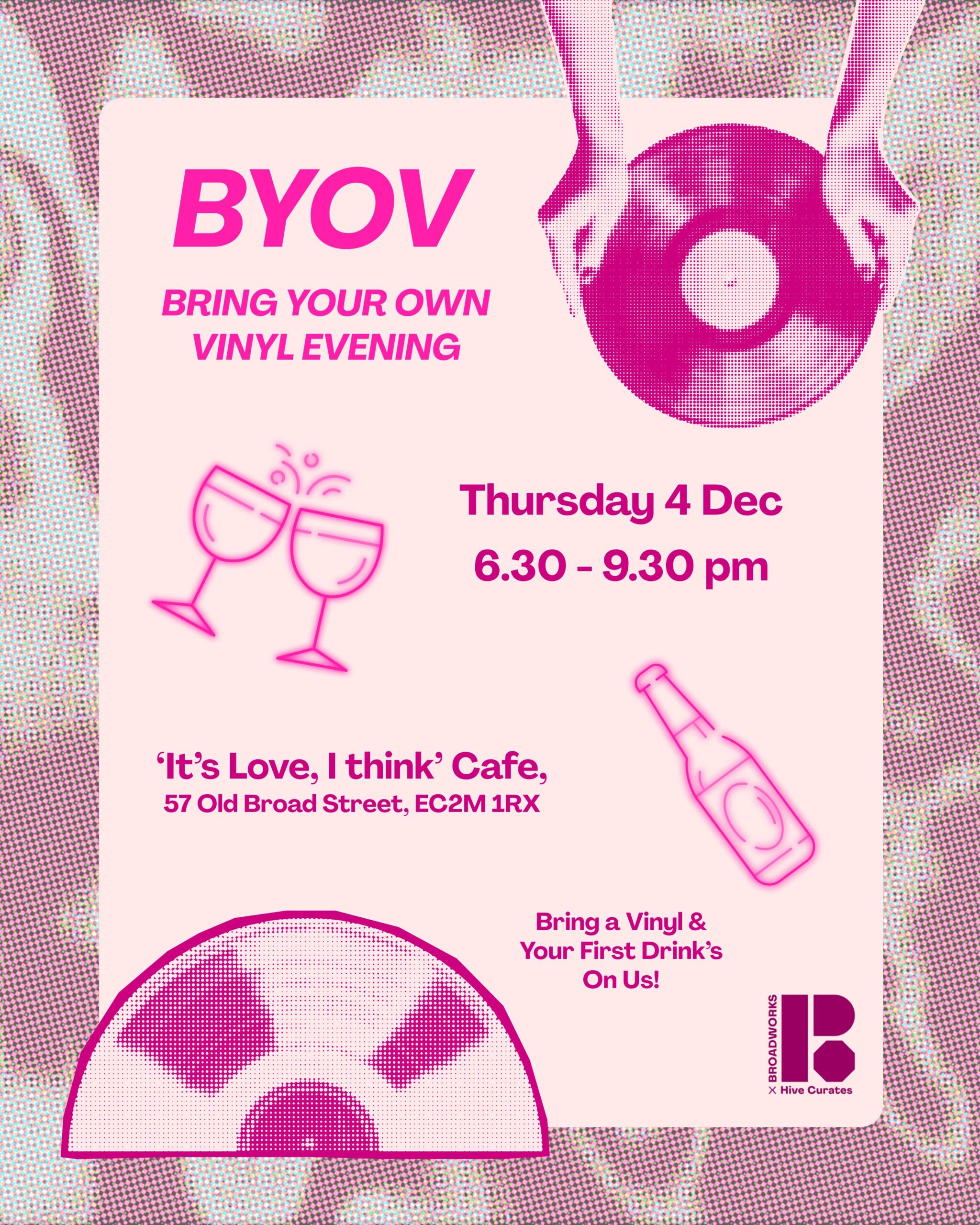Join Broadworks for BYOV: Bring Your Own Vinyl Evening, a relaxed after-office hangout at the ‘It’s Love, I Think’ pink café, the perfect spot to decompress with good music, great drinks, and even better company.